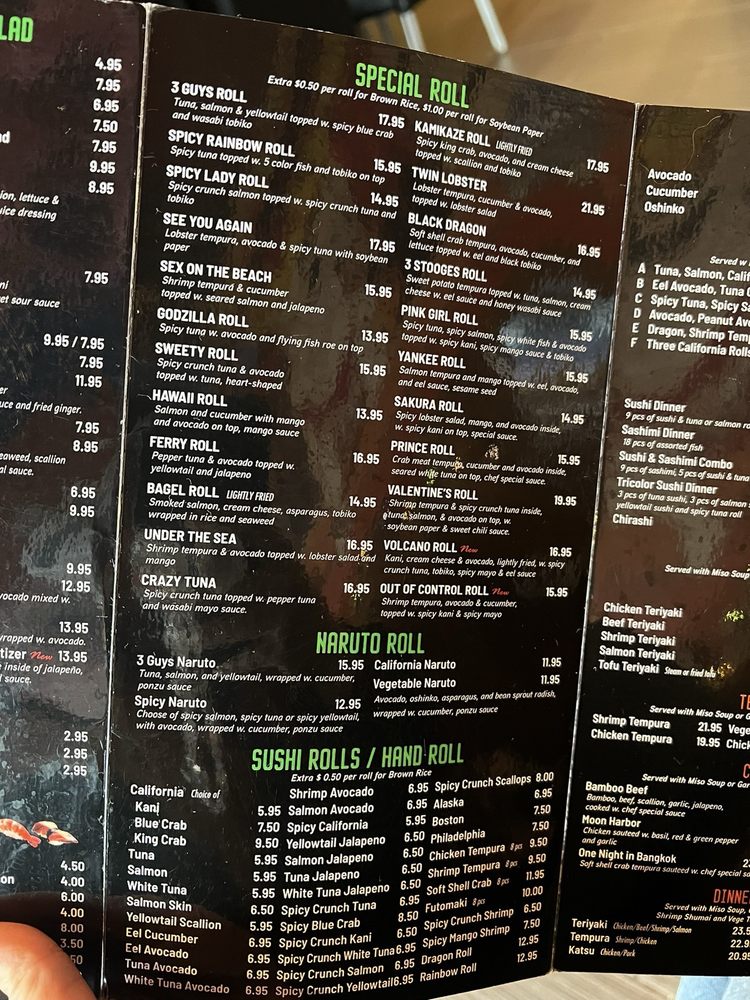 Experience the delicious offerings at 3 Guys Sushi, where each bite is a delightful journey into the world of sushi and Thai flavors.